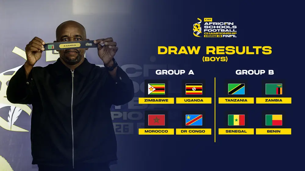 Exciting group stage encounters have been confirmed for the CAF African Schools Football Championship Zimbabwe 2026 following the official draw held in Harare on Thursday.